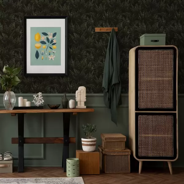 Papel pintado Helecho oscuro, adorno de bosque, colores nocturnos Nr. a00214