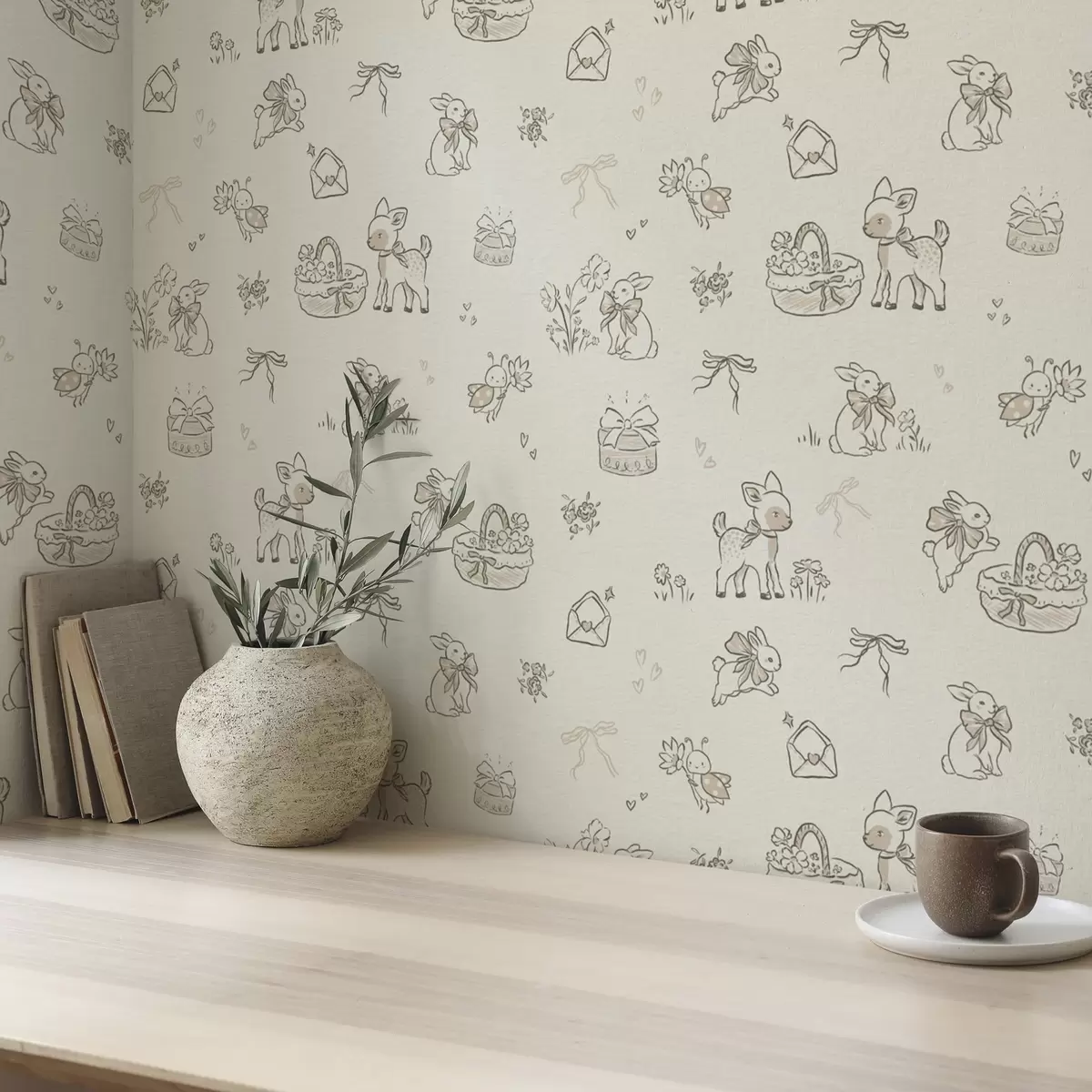 Papel pintado Bonita escena de bosque con ciervos, conejos y abejas Nr. a00215