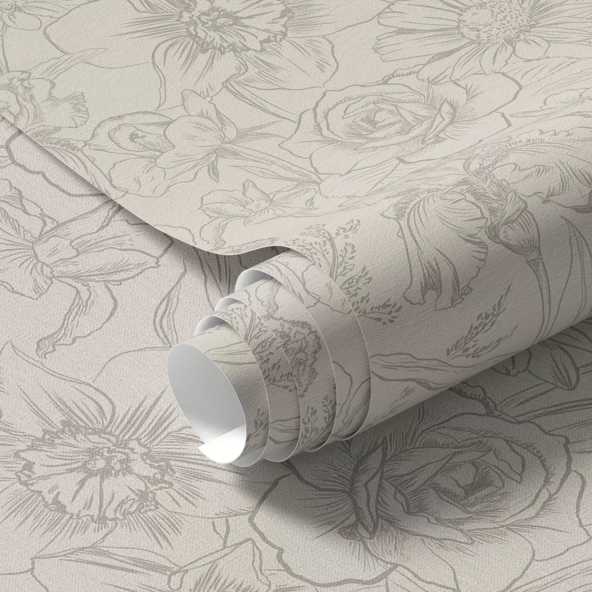 Papel pintado Flores de contorno sobre fondo crema, delicado motivo floral Nr. a00218