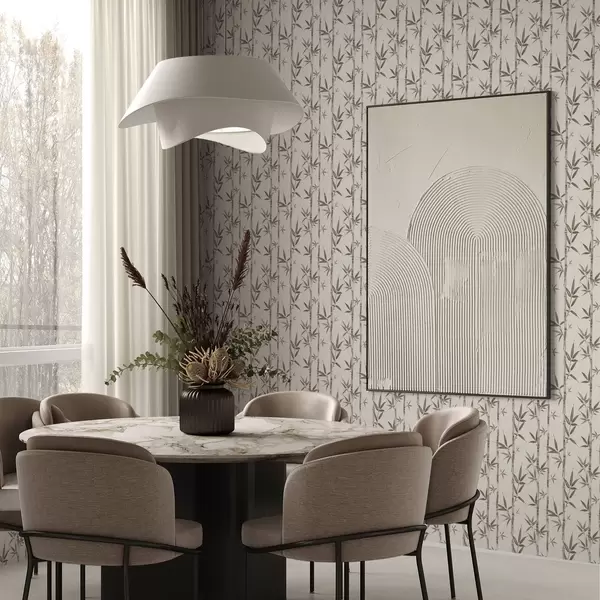 Papel pintado Estampado de bambú beige con hojas de estilo japonés Nr. a00236