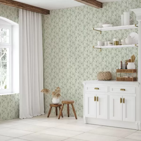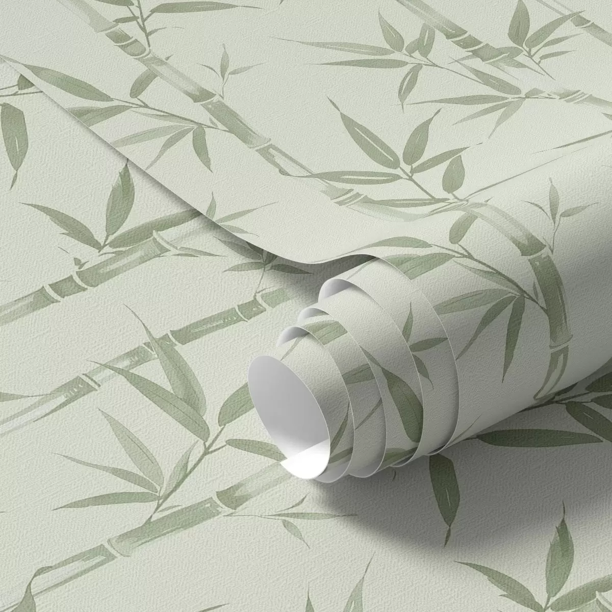 Papel pintado Bambú verde claro sobre fondo pastel suave Nr. a00236v1