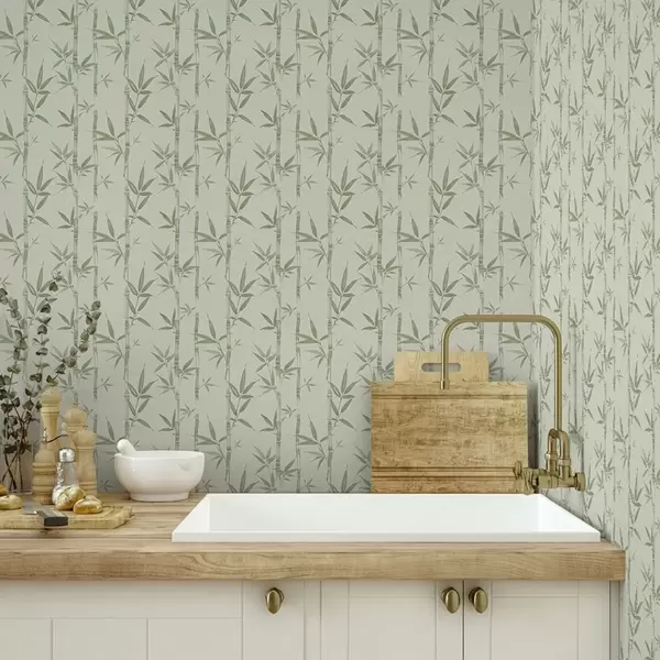 Papel pintado Bambú verde claro sobre fondo pastel suave Nr. a00236v1