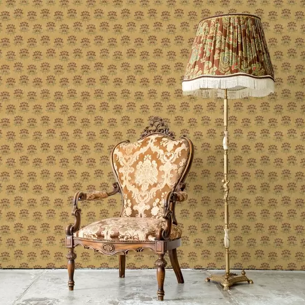 Papel pintado Motivo floral retro con lotos sobre fondo amarillo Nr. a00238