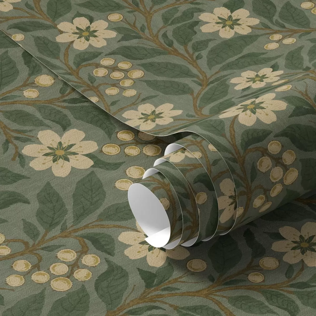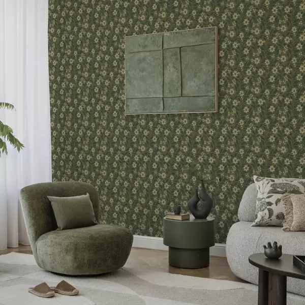 Papel pintado Flores amarillas y bayas sobre fondo verde Nr. a00242