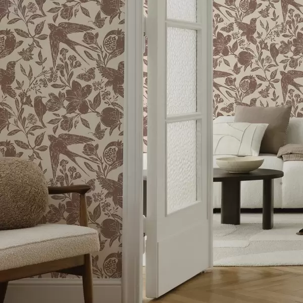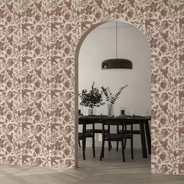 Papel pintado Pájaros, granadas y flores en estilo vintage Nr. a00263