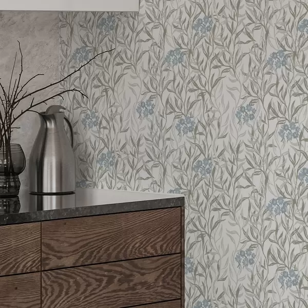 Papel pintado Ligero estampado botánico con flores azules Nr. a00268