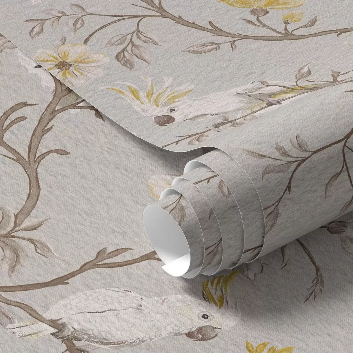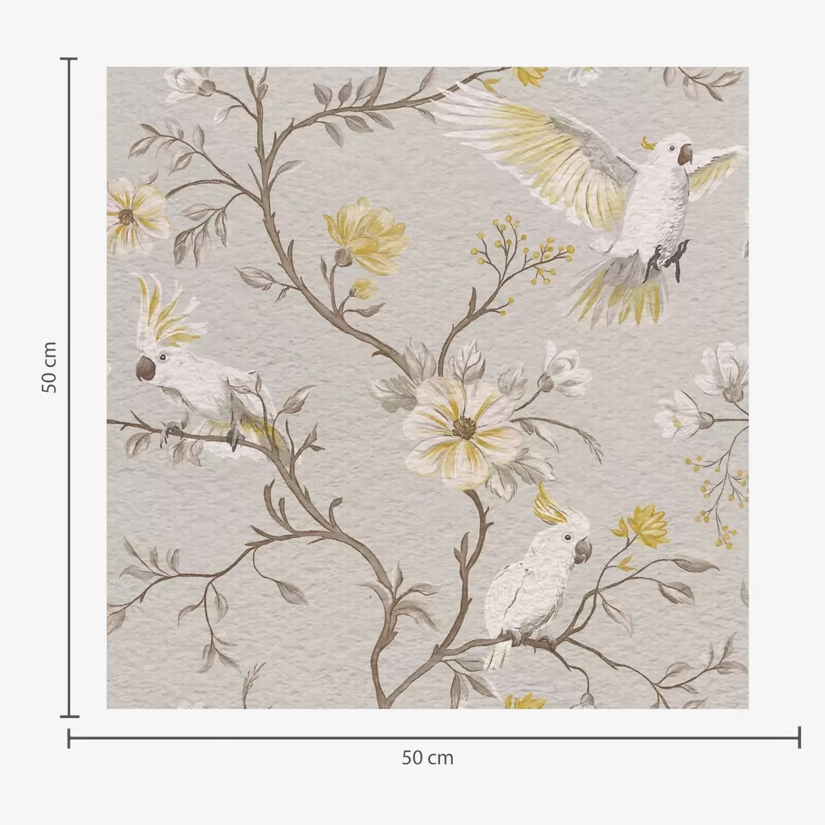 Papel pintado Loros y flores amarillas sobre fondo claro Nr. a00270