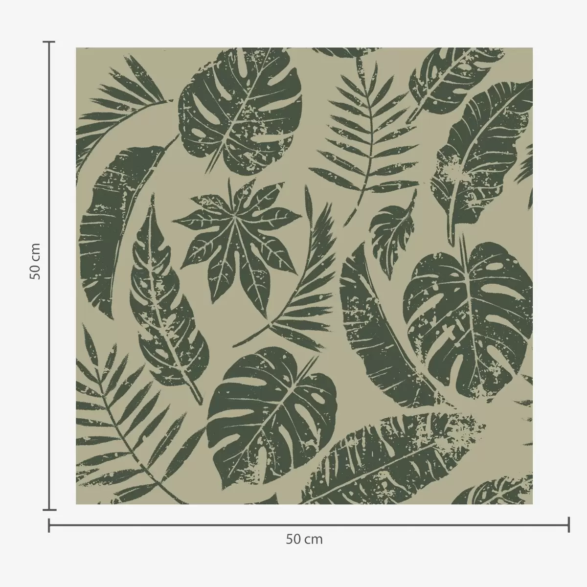 Papel pintado Hojas tropicales en linograbado, verde sobre amarillo Nr. a00274