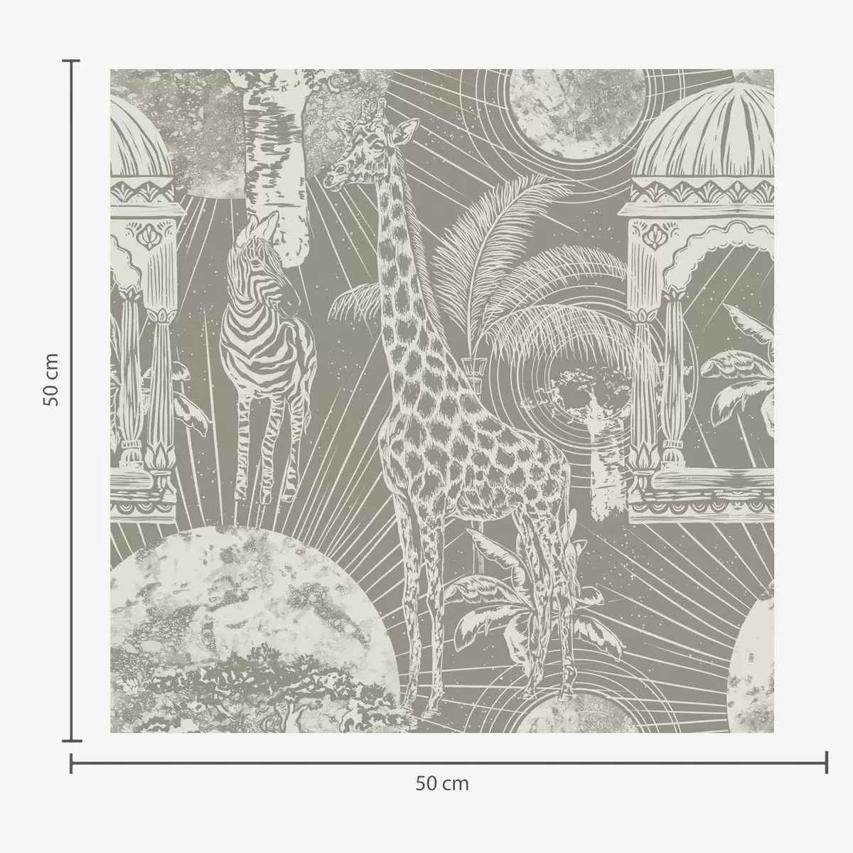 Papel pintado Jirafa y cebra sobre un fondo de arquitectura y árboles tropicales Nr. a00276