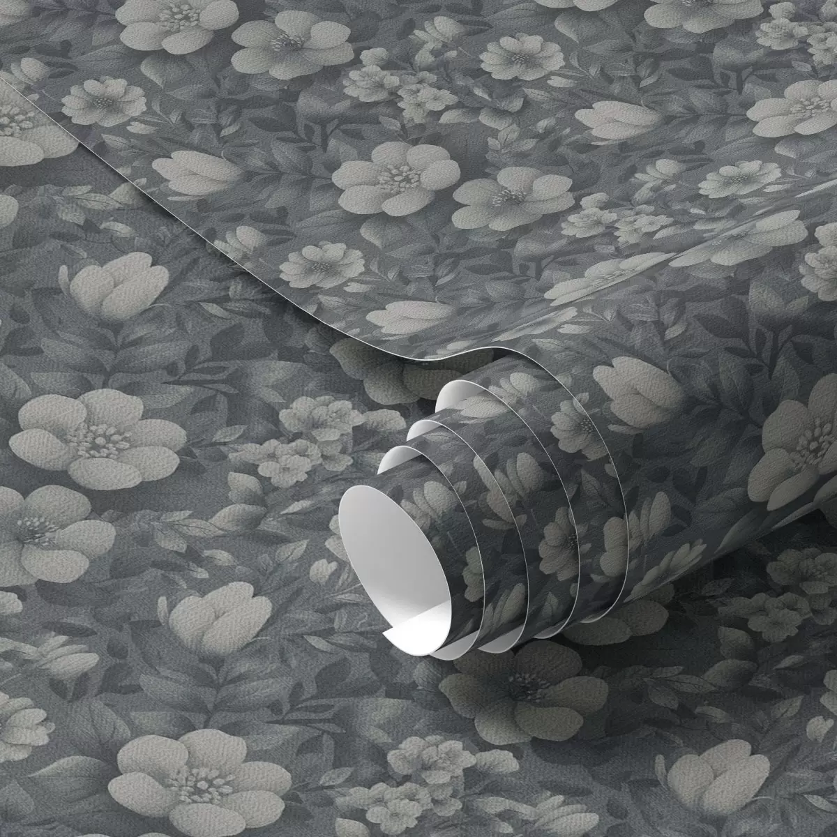 Papel pintado Estampado azul oscuro con voluminosas flores blancas Nr. a00282