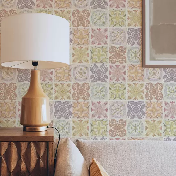 Papel pintado Adornos geométricos de azulejos de colores Nr. a00284