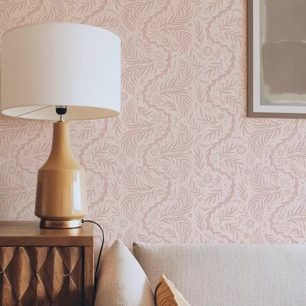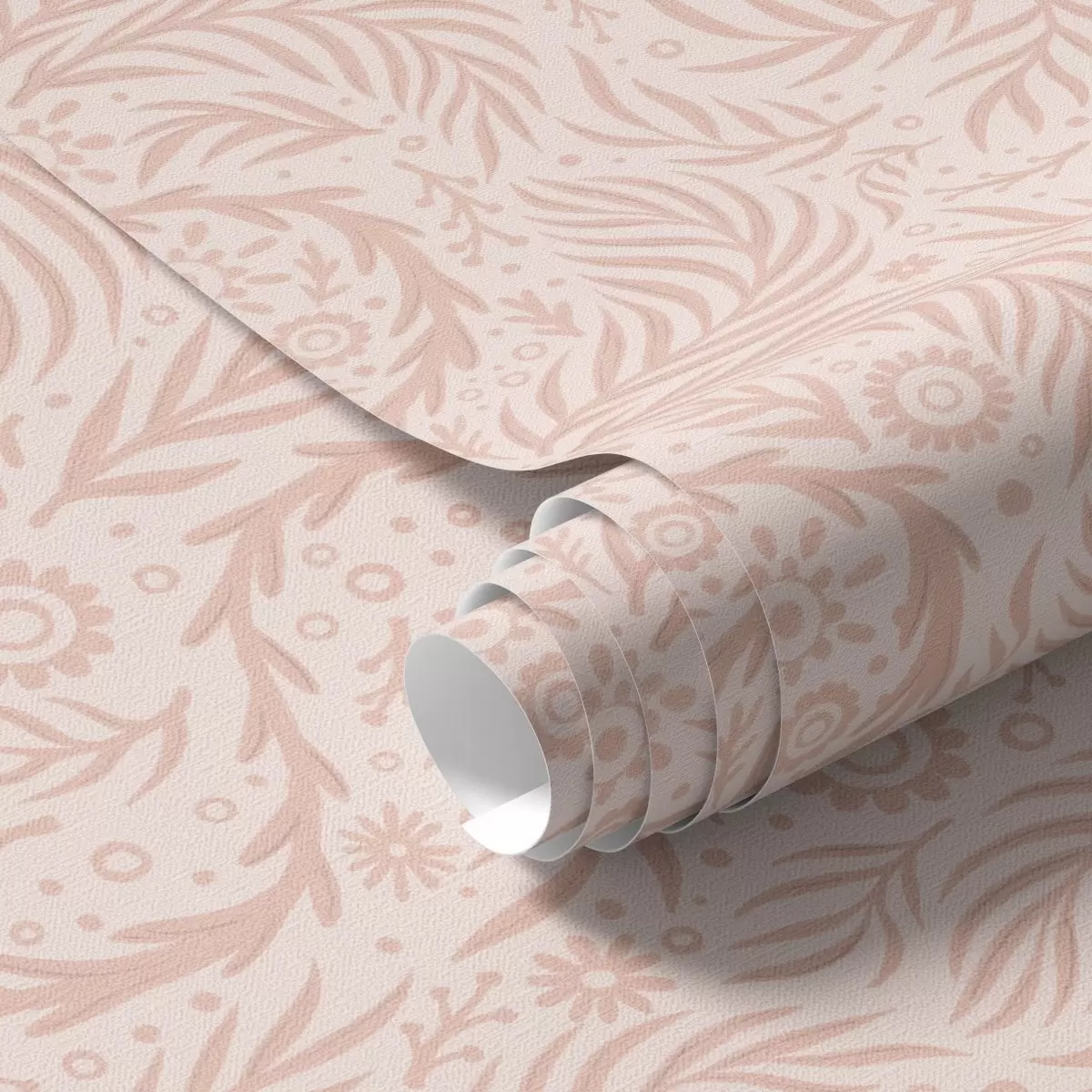 Papel pintado Elementos florales rosa pálido sobre fondo rosa Nr. a00290
