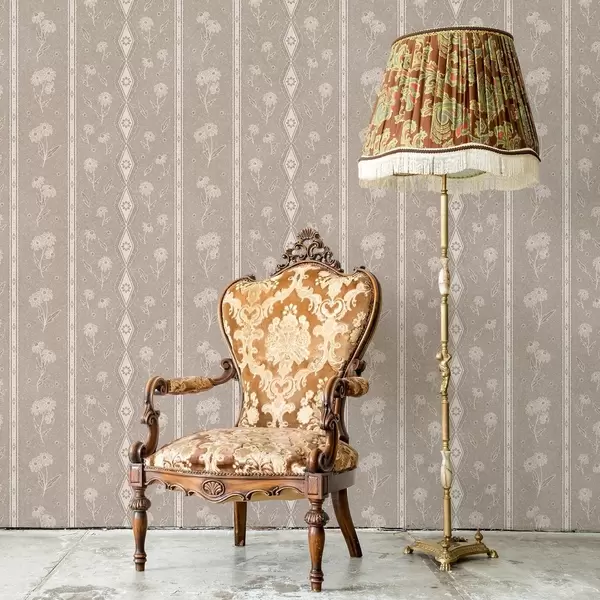 Papel pintado Rayas con margaritas y encaje sobre fondo gris-beige Nr. a00295