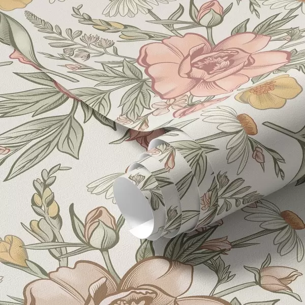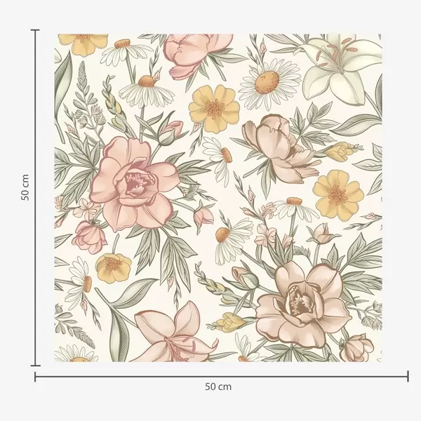 Papel pintado Margaritas, peonías, lirios y hojas en delicados colores Nr. a00299