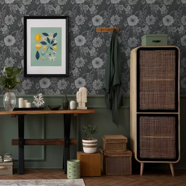 Papel pintado Estampado floral gris y blanco con efecto retro Nr. a00307
