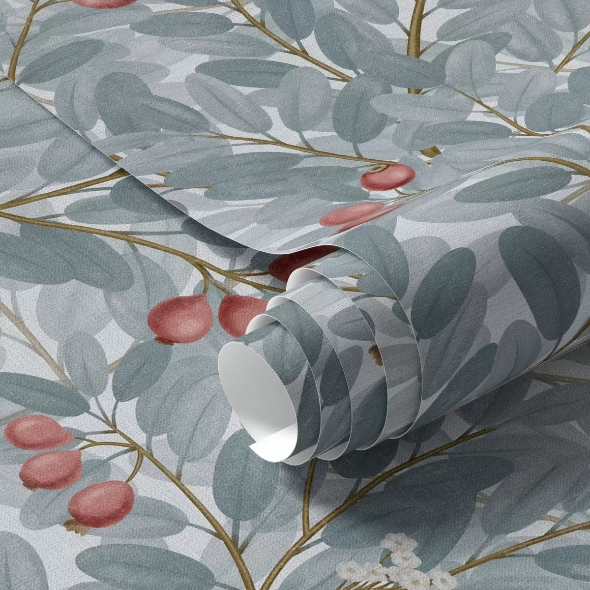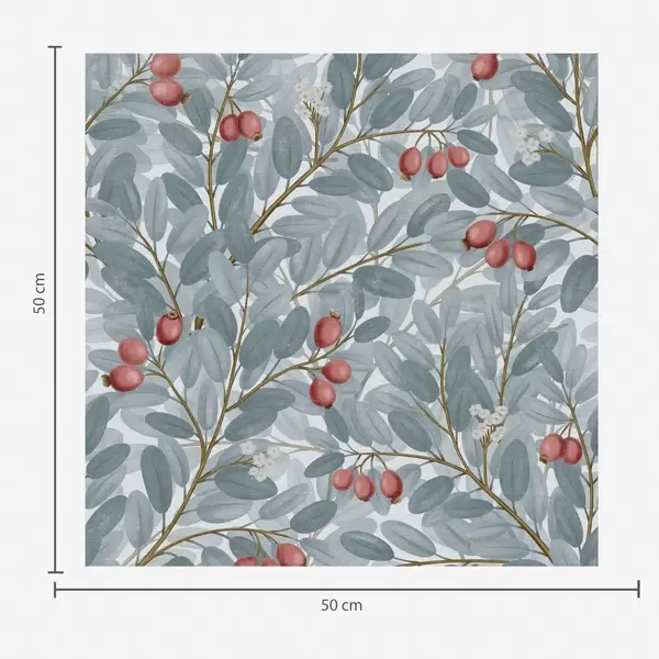 Papel pintado Hojas azules con ramitas de bayas rojas Nr. a00309