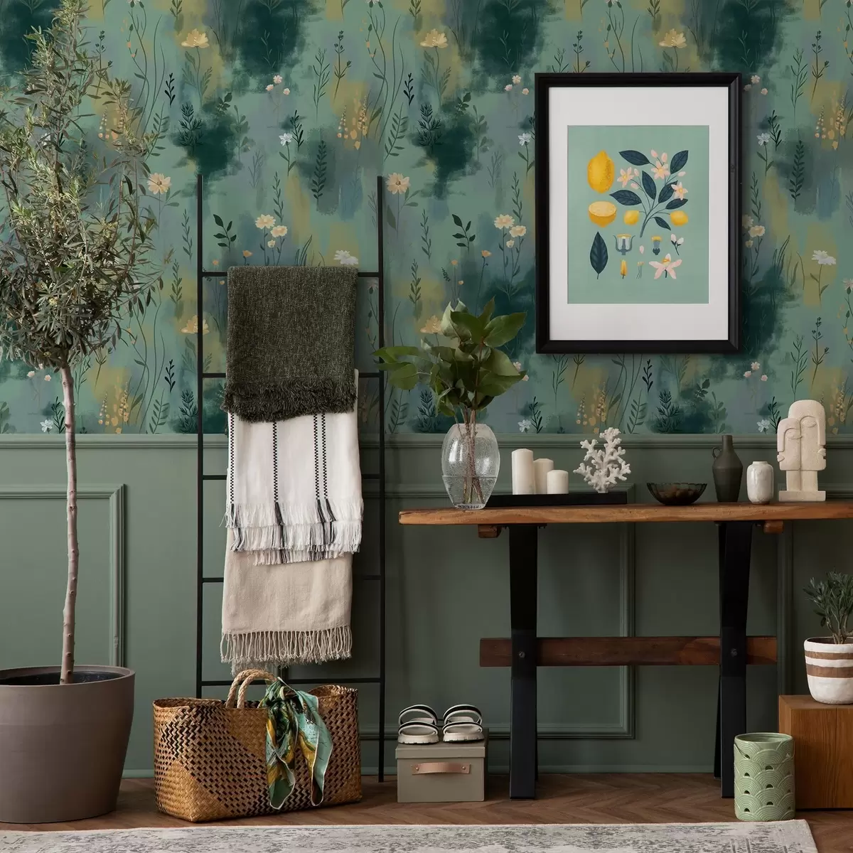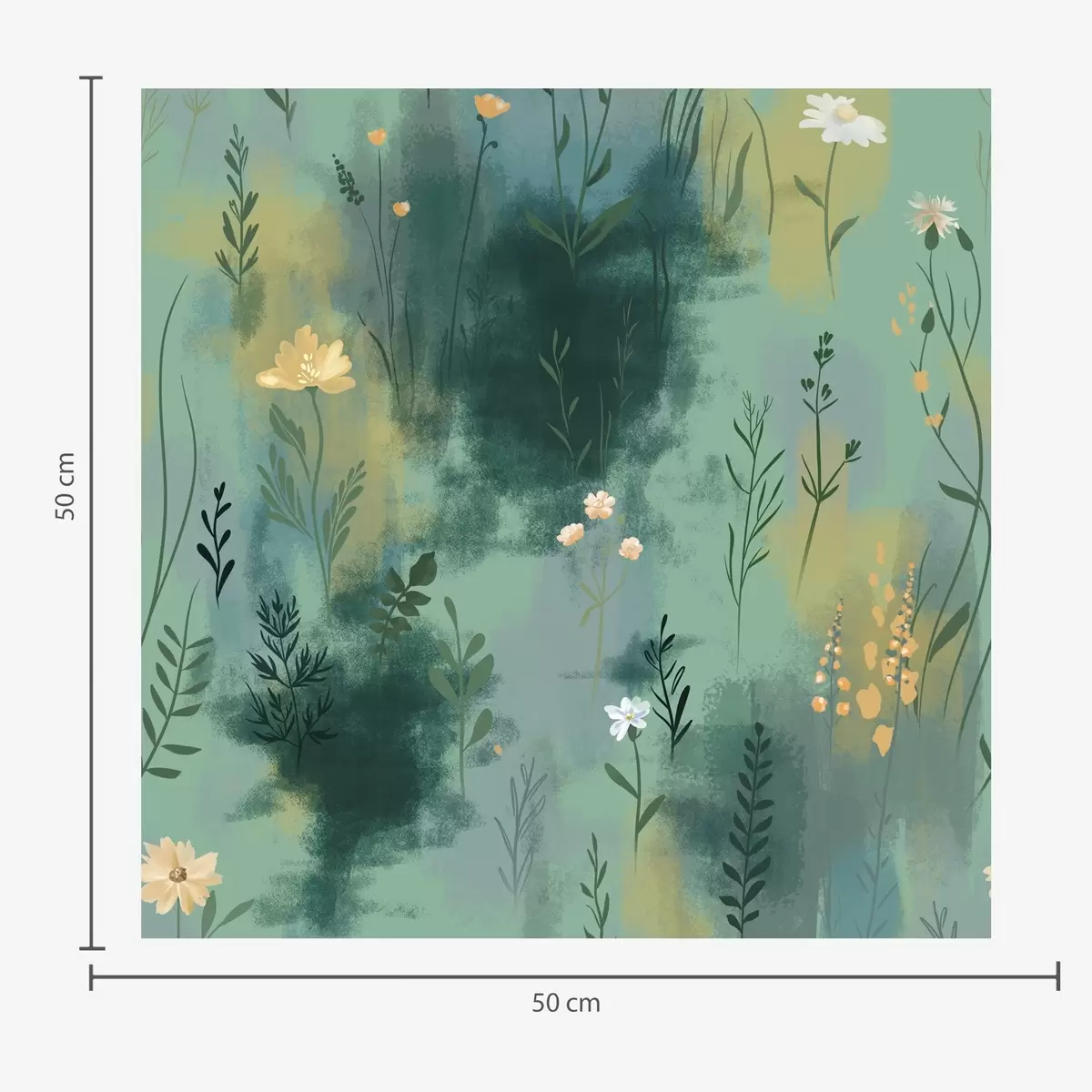 Papel pintado Abstracción acuarela con flores sobre fondo verde Nr. a00312
