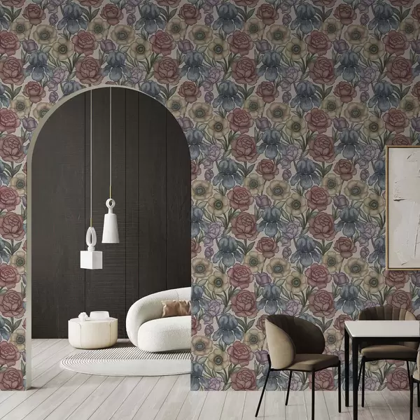 Papel pintado Grandes ilustraciones florales con lirios y peonías Nr. a00325