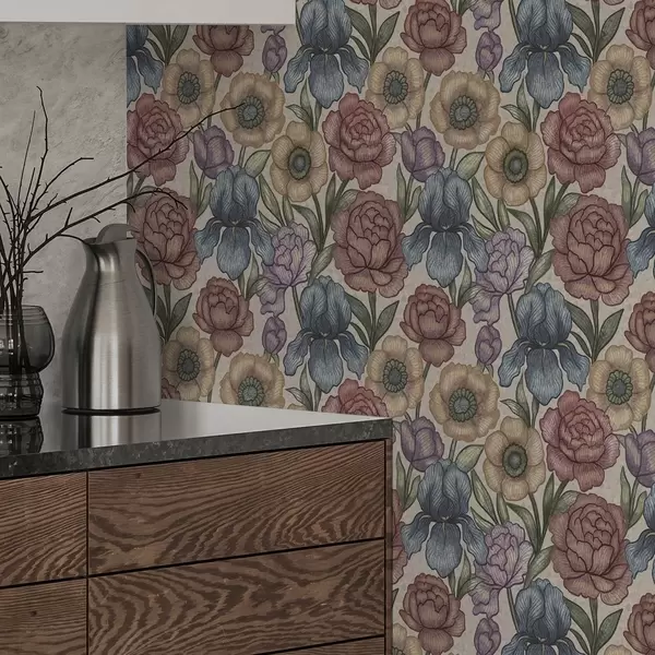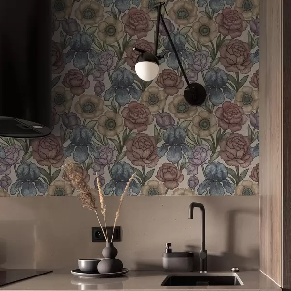 Papel pintado Grandes ilustraciones florales con lirios y peonías Nr. a00325