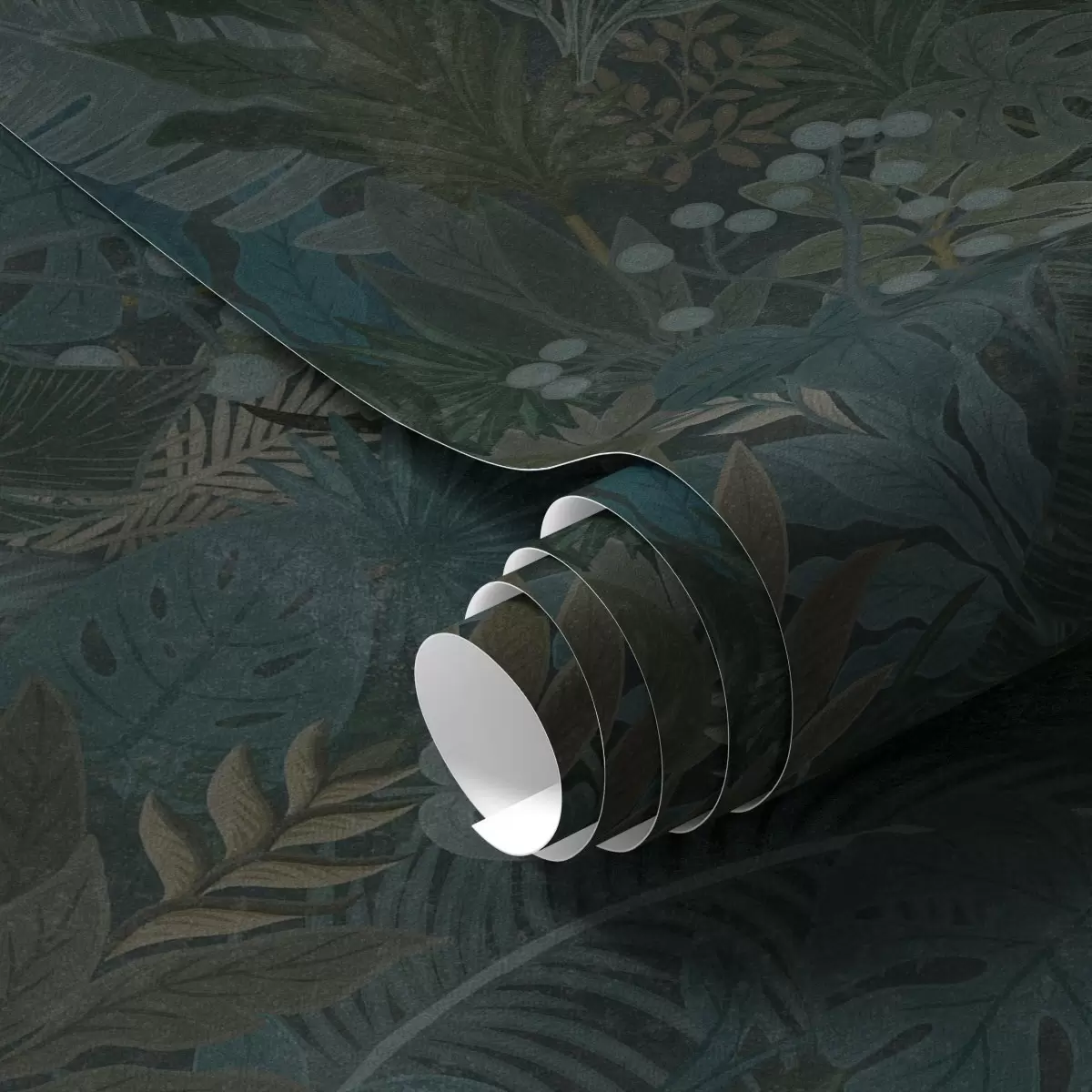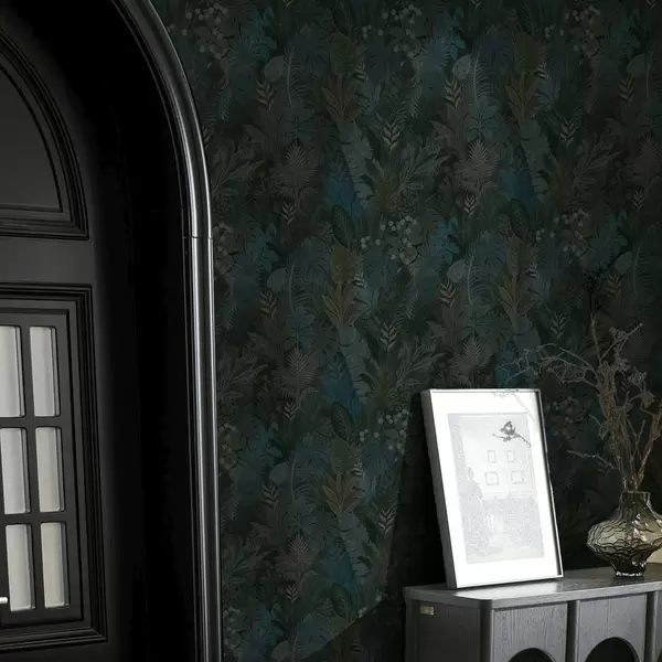 Papel pintado Follaje tropical verde oscuro con toques azules Nr. a00327