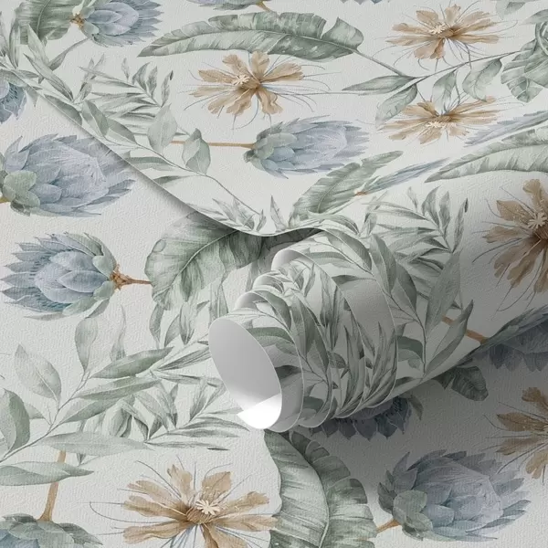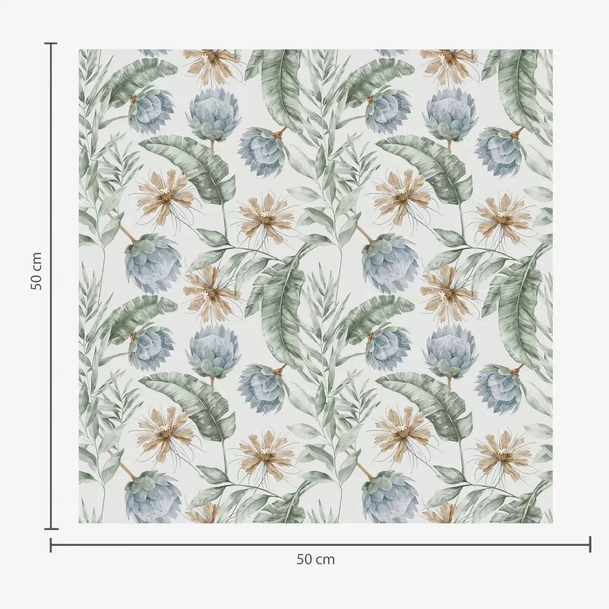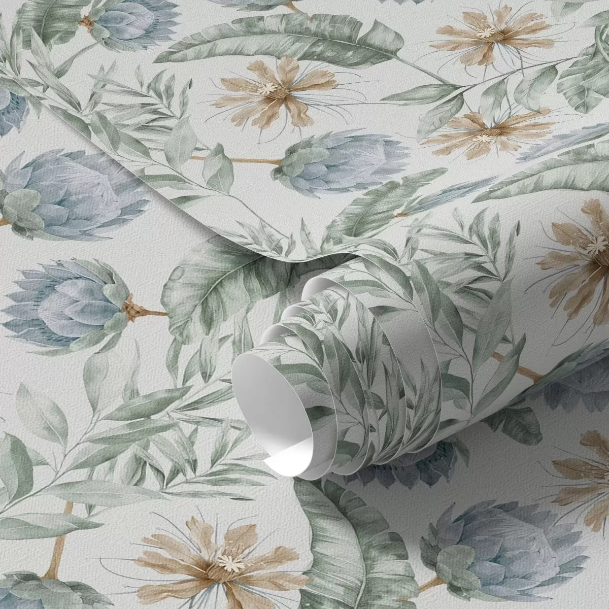 Papel pintado Motivo botánico con alcachofas y hojas tropicales Nr. a00340