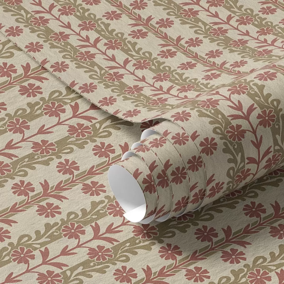 Papel pintado Adorno a rayas con flores rojas Nr. a00341