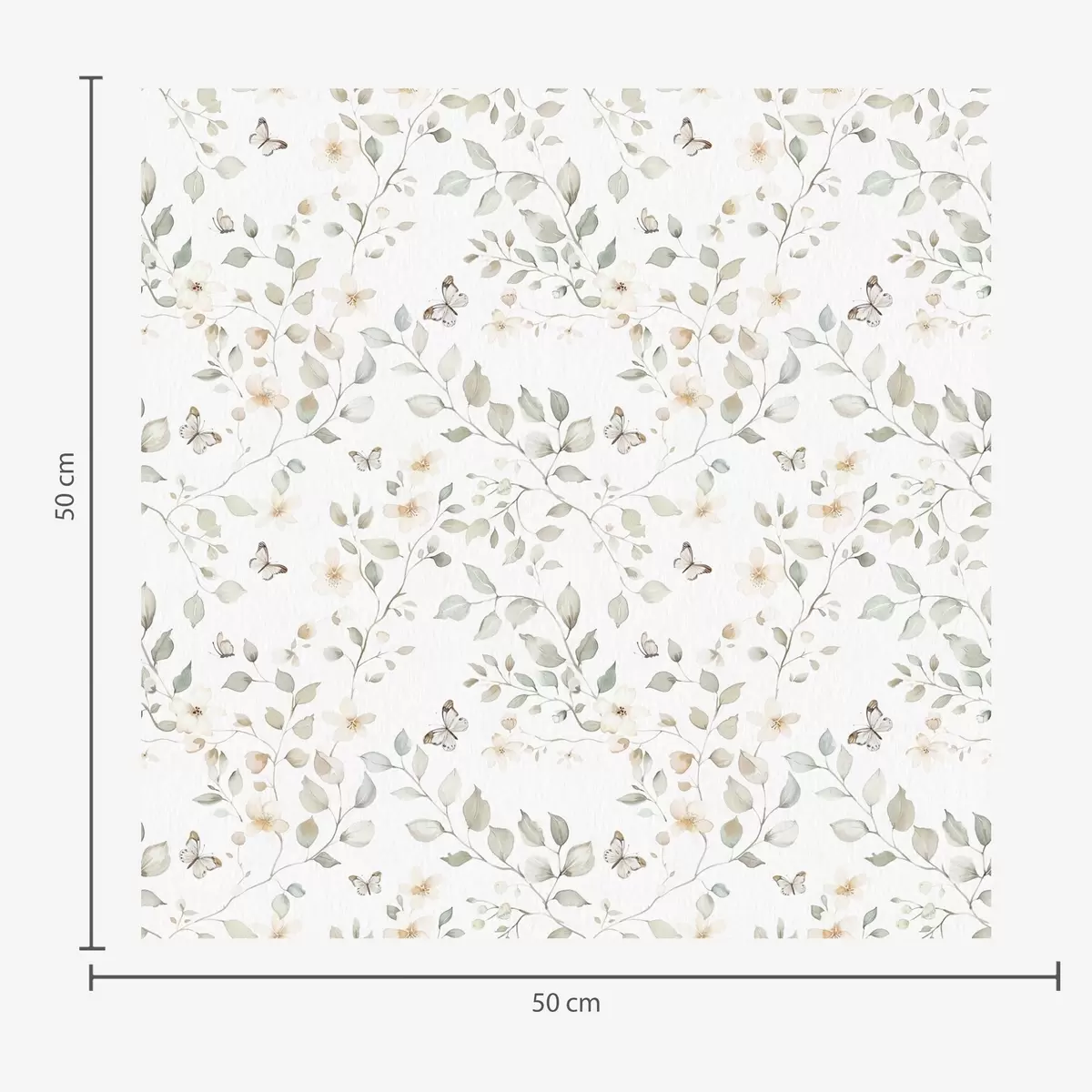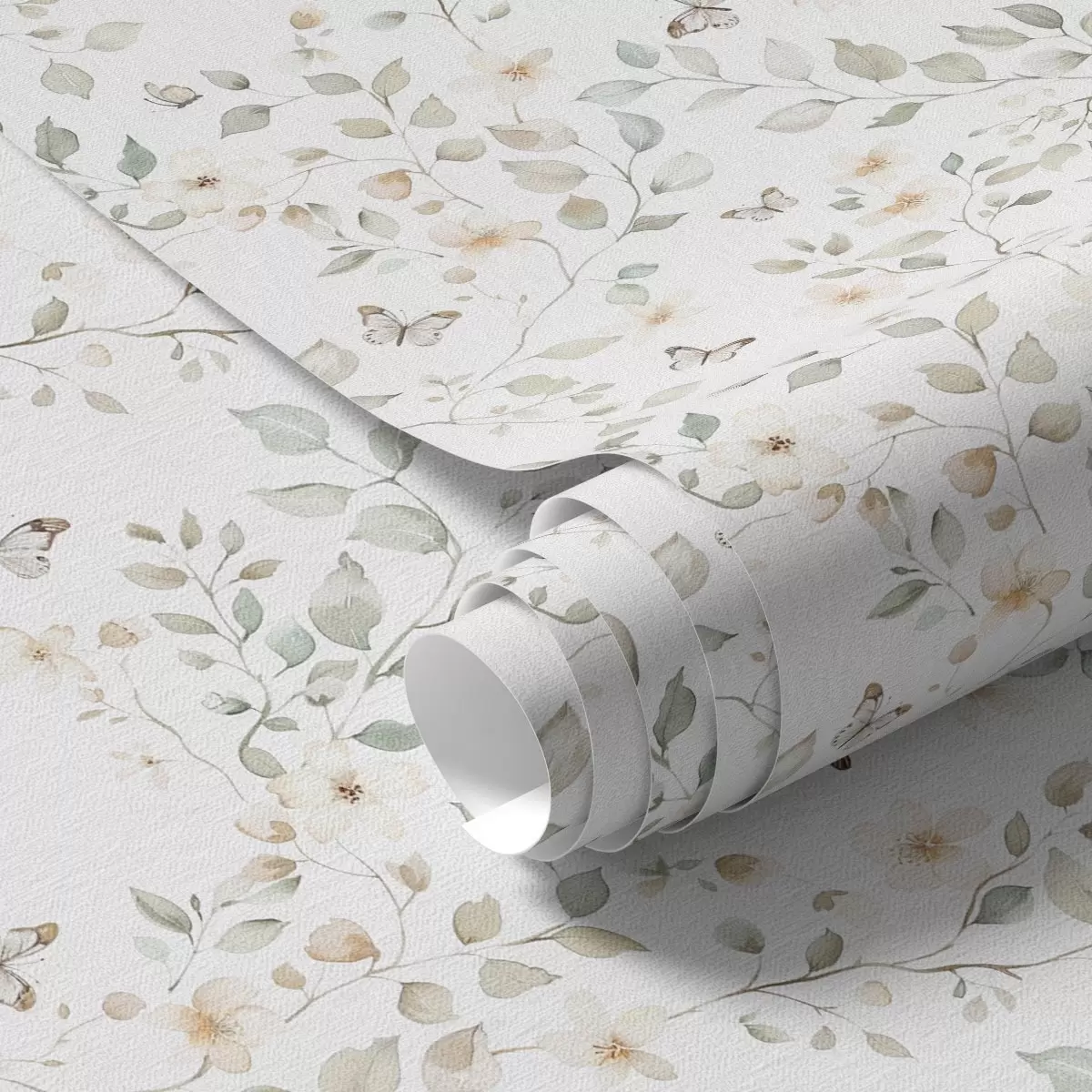 Papel pintado Ramas ligeras con hojas y flores en pequeña repetición Nr. a00343