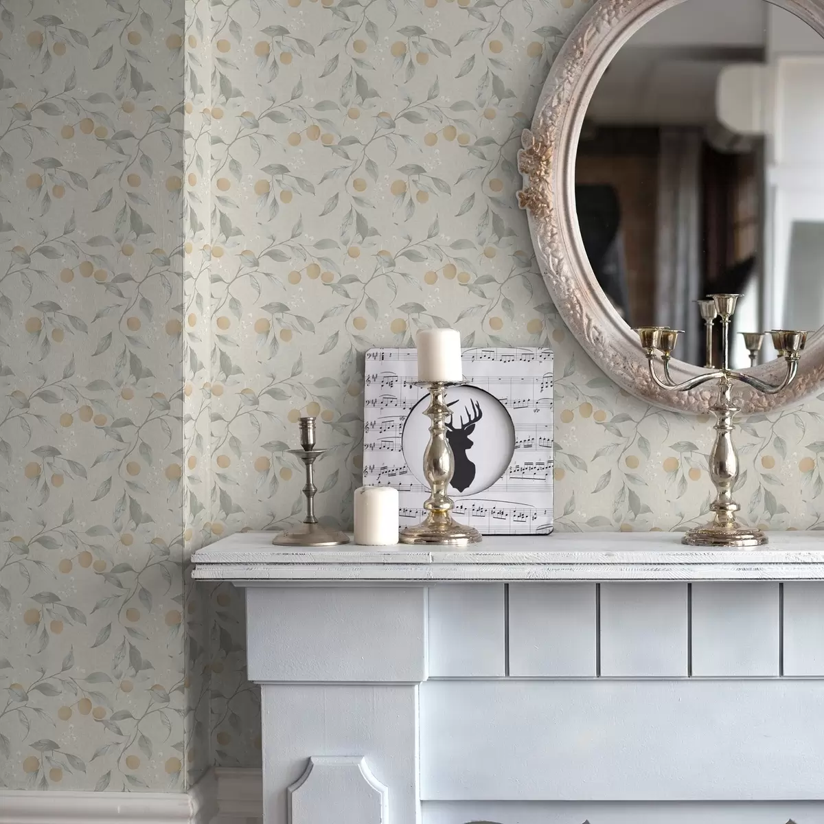 Papel pintado Ramas claras con bayas naranjas Nr. a00344