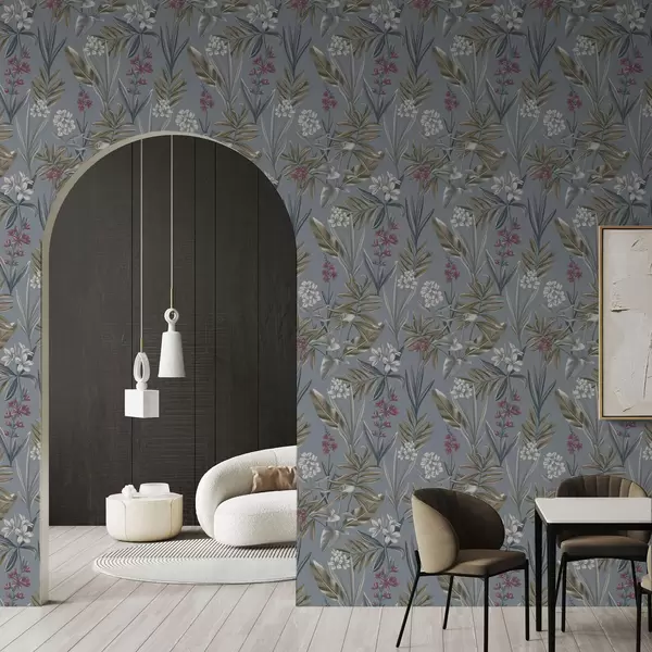 Papel pintado Ramas florales sobre fondo gris azulado Nr. a00350