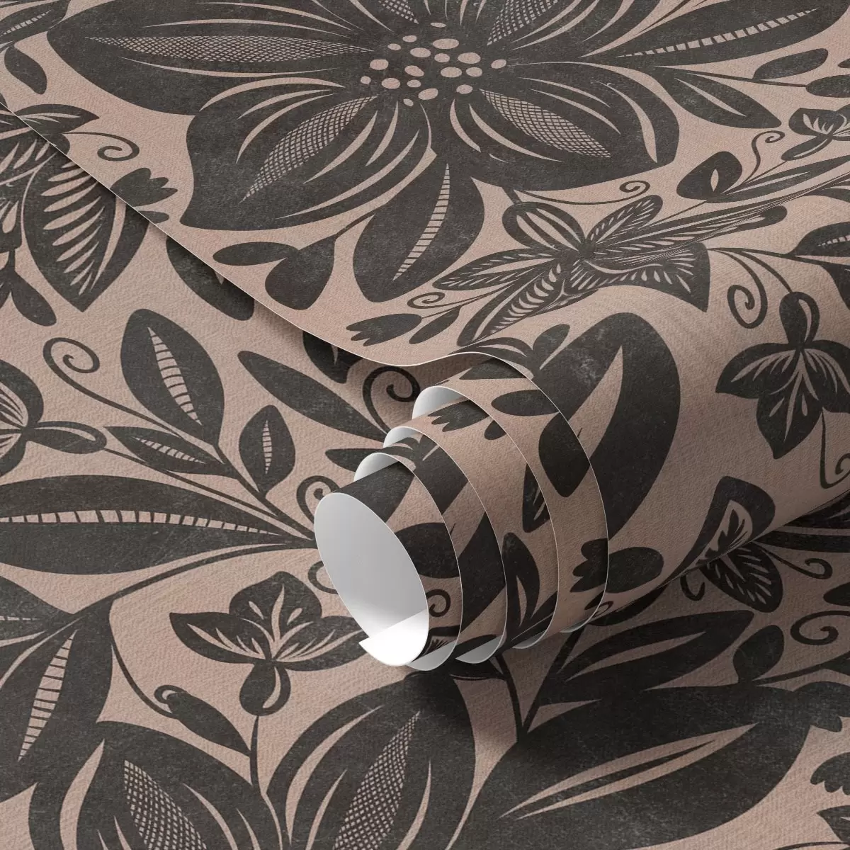 Papel pintado Estampado floral étnico negro y rosa y estampado floral étnico rosa Nr. a00351