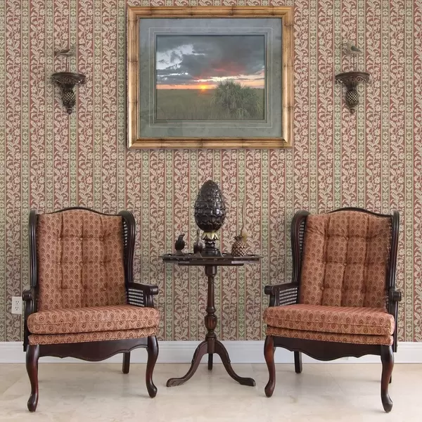 Papel pintado Rayas verticales retro con estampado floral Nr. a00362