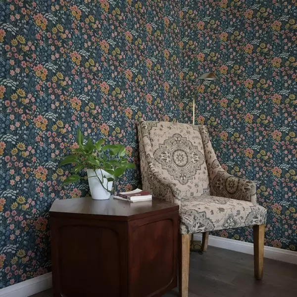 Papel pintado Coloridas flores de acuarela sobre azul marino Nr. a00381