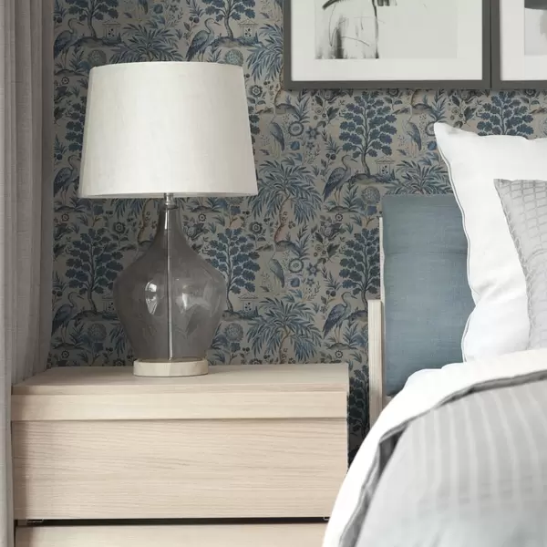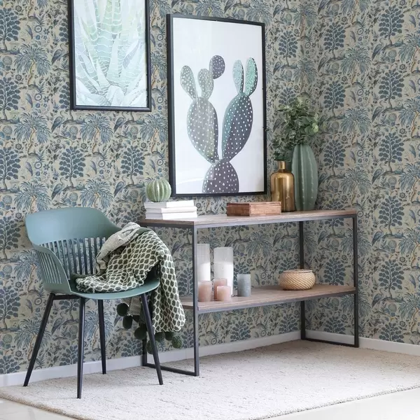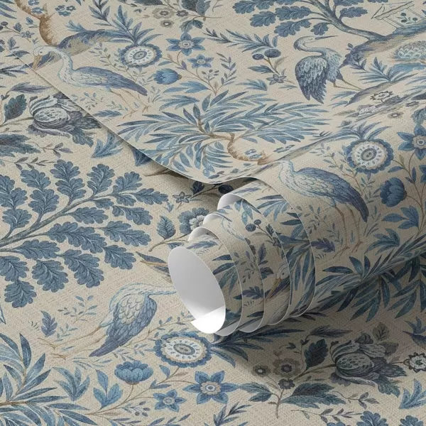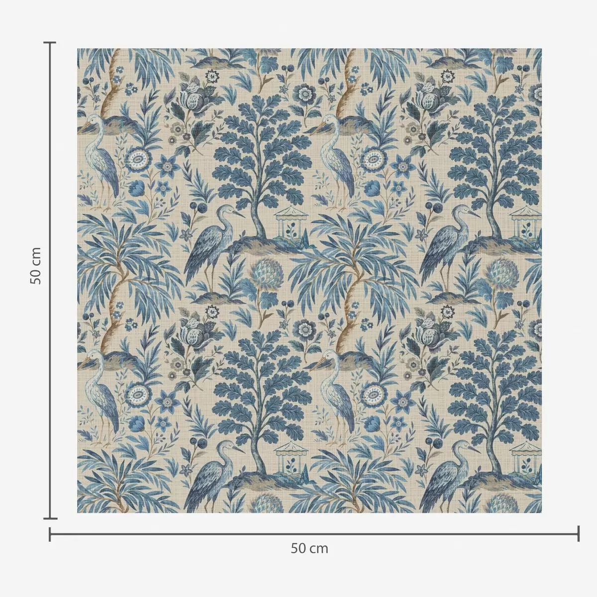 Papel pintado Toile de Jouy con pájaros azules y árboles tropicales Nr. a00382