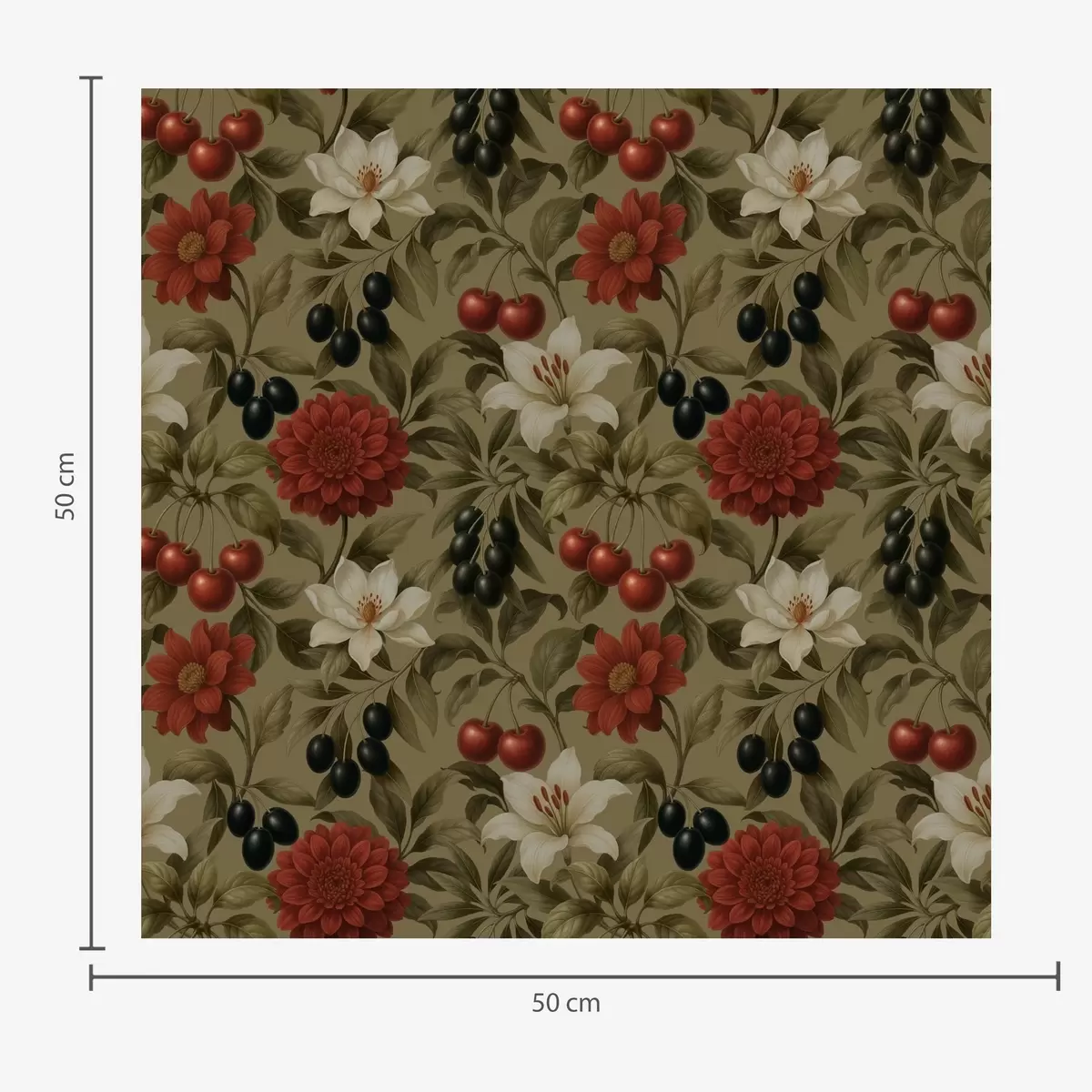 Papel pintado Cerezas, flores y aceitunas negras Nr. a00384
