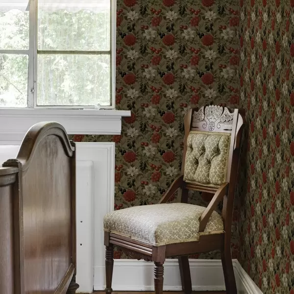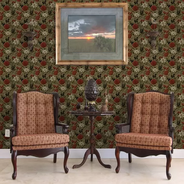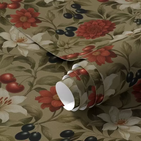 Papel pintado Cerezas, flores y aceitunas negras a00384