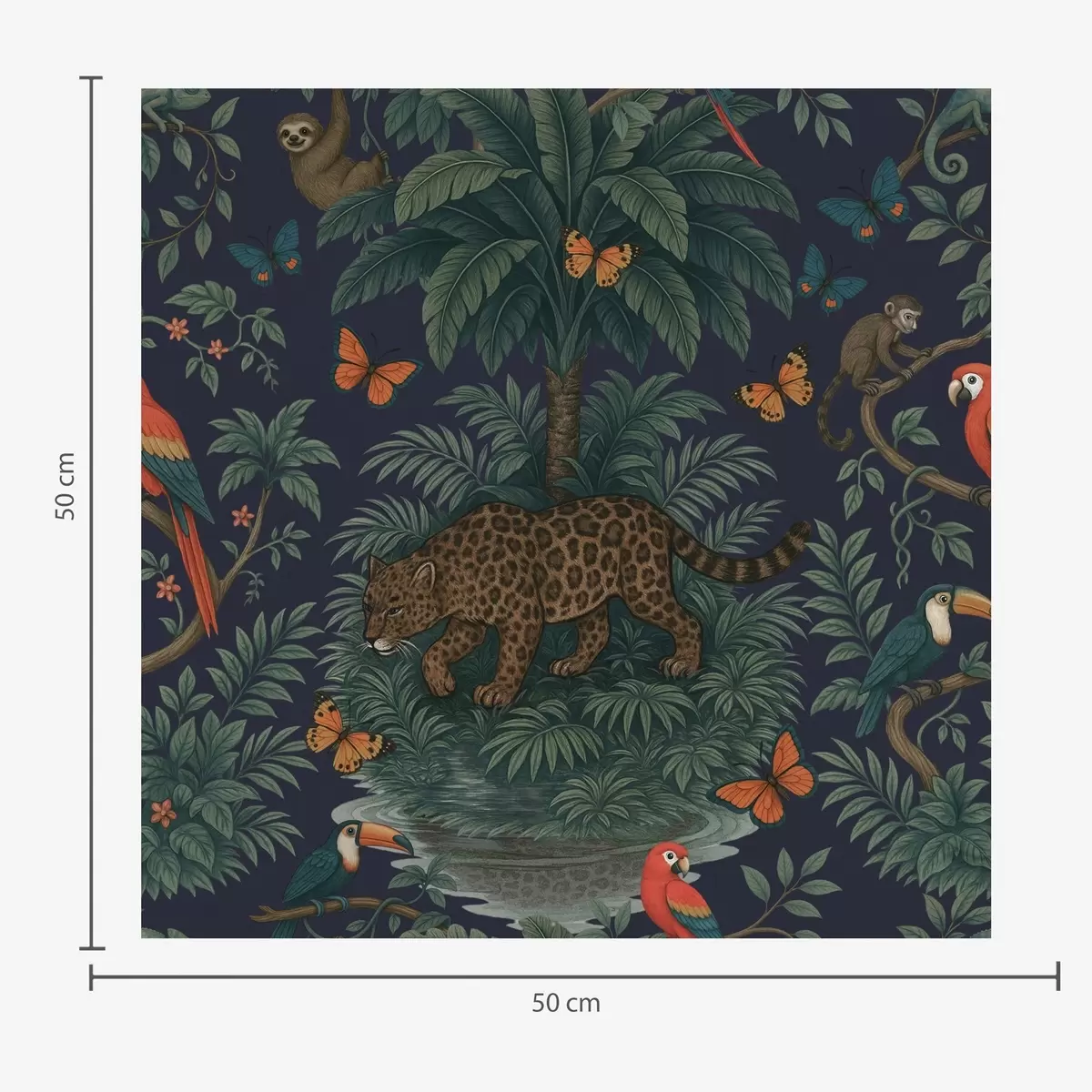 Papel pintado Selva tropical con leopardo, leopardo, loros y mariposas Nr. a00388