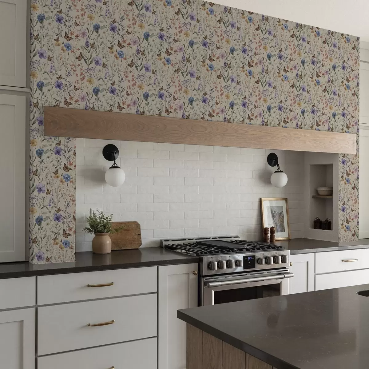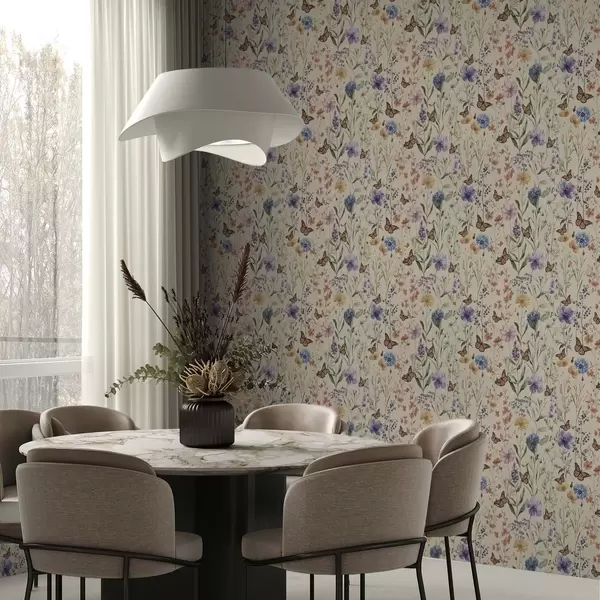 Papel pintado Flores silvestres y mariposas en suave acuarela Nr. a00389