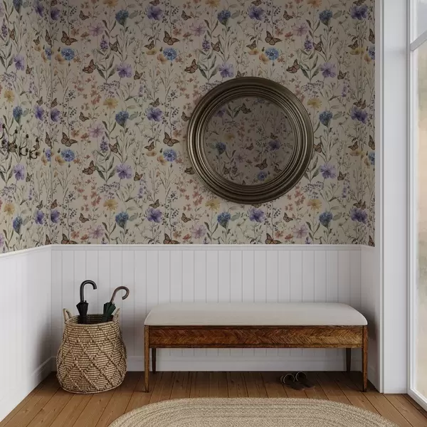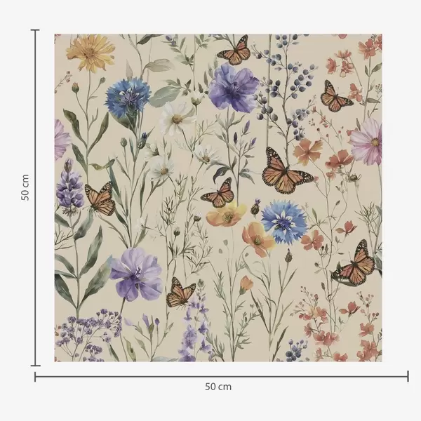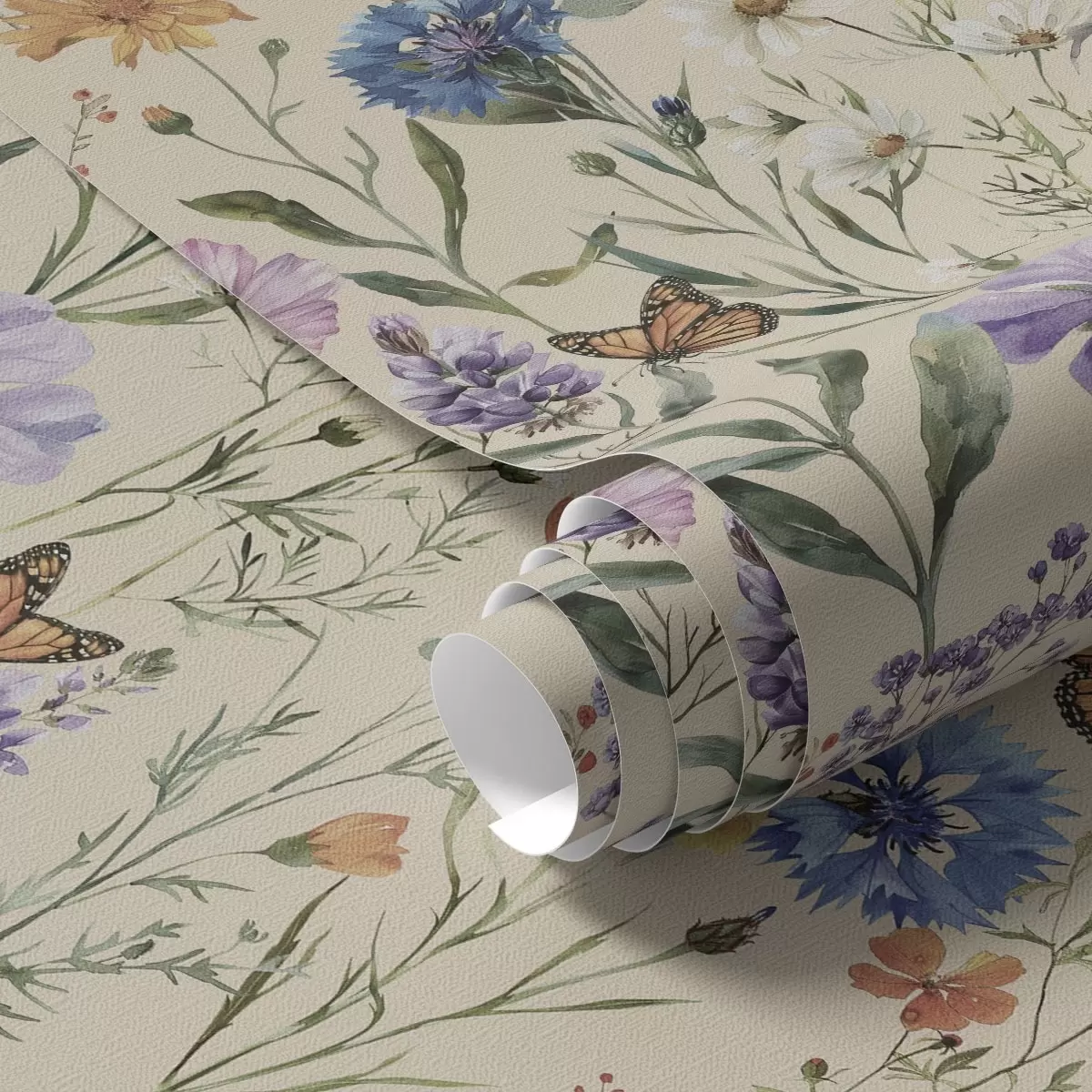 Papel pintado Flores silvestres y mariposas en suave acuarela Nr. a00389