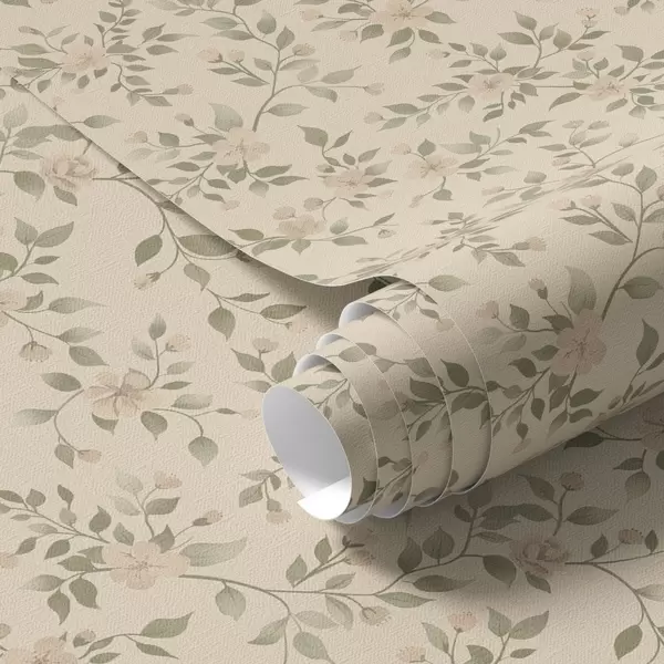 Papel pintado Delicadas ramas de flores pastel sobre fondo beige Nr. a00390