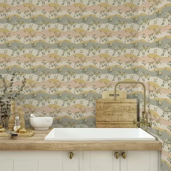 Papel pintado Flores de prado onduladas en estilo minimalista pastel Nr. a00396