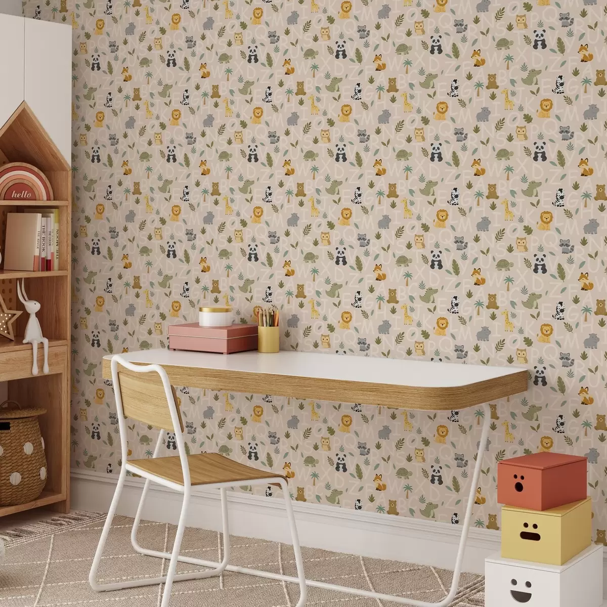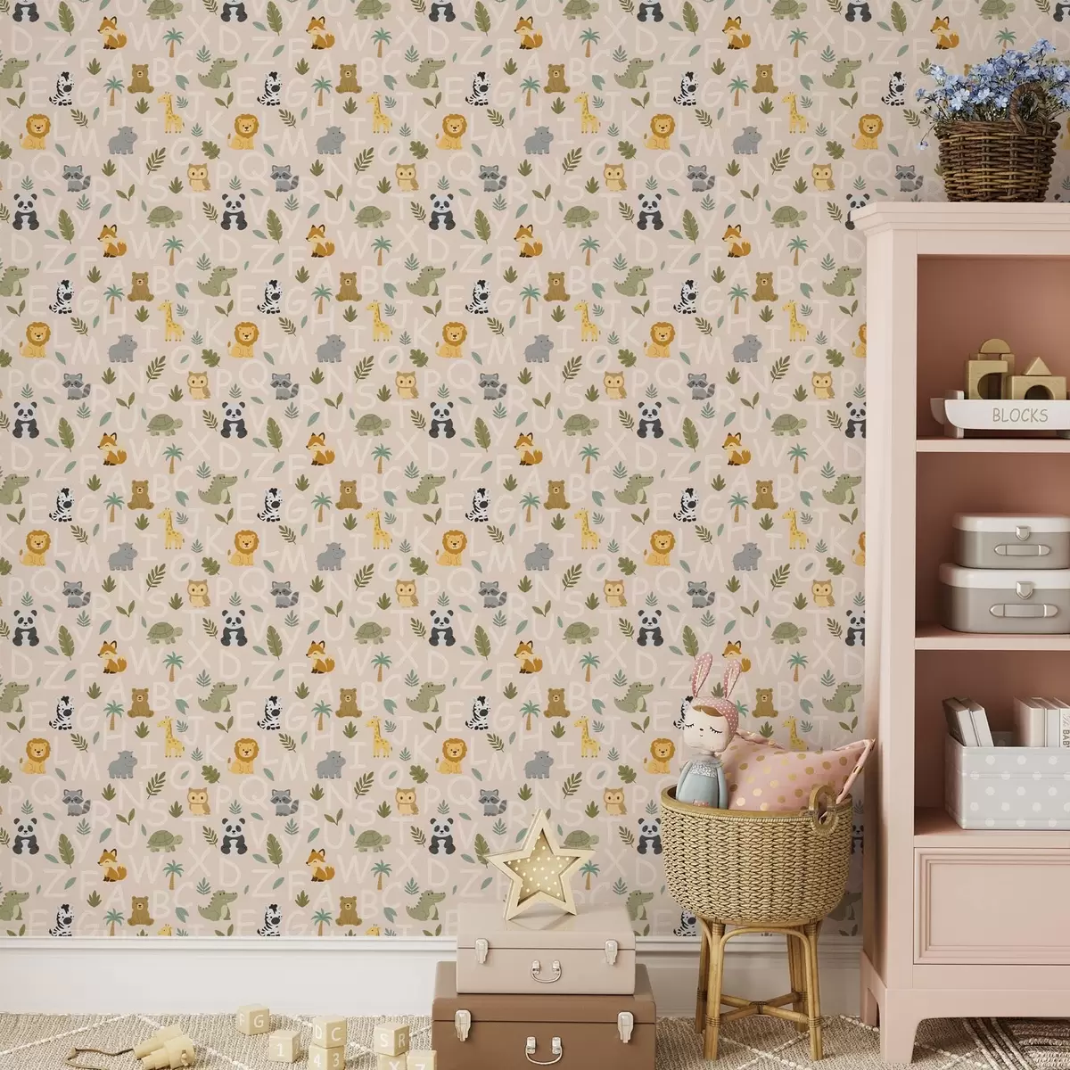 Papel pintado Abecedario con simpáticos animales y plantas para niños Nr. a00400