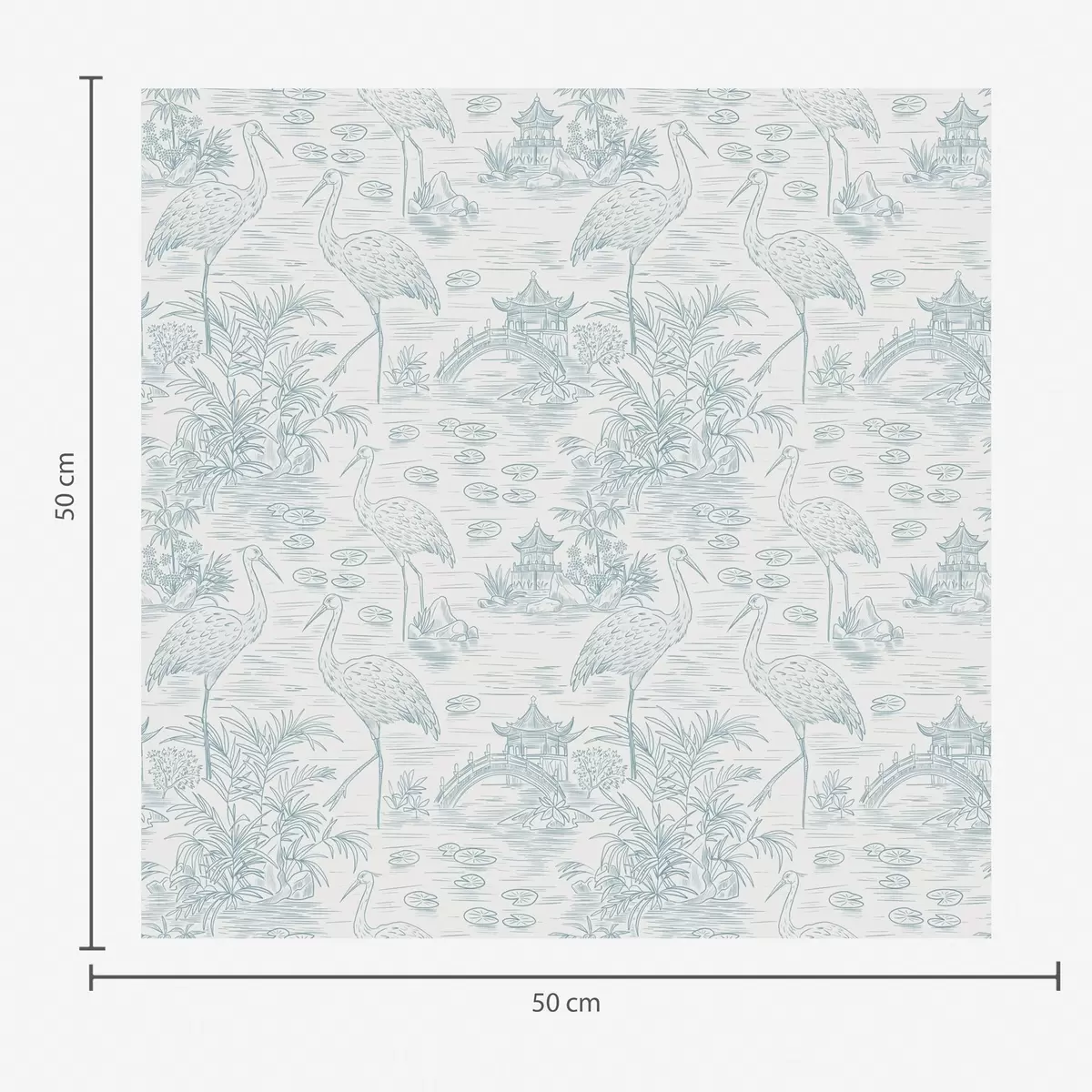 Papel pintado Paisaje asiático con grullas, puentes y lotos Nr. a00405