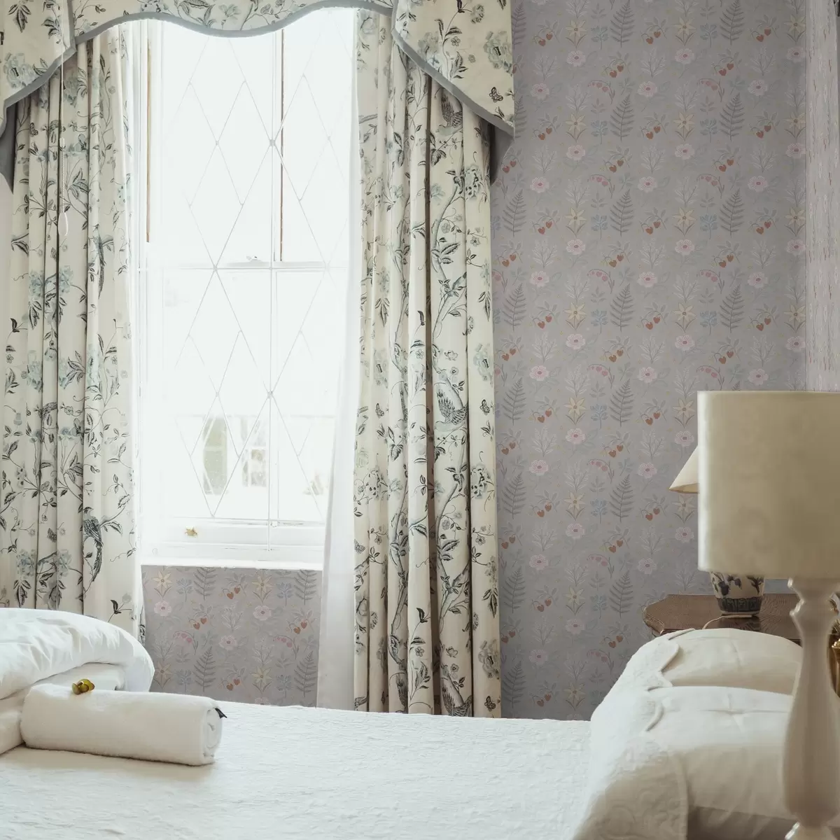 Papel pintado Flores y bayas pastel sobre fondo gris claro Nr. a00406