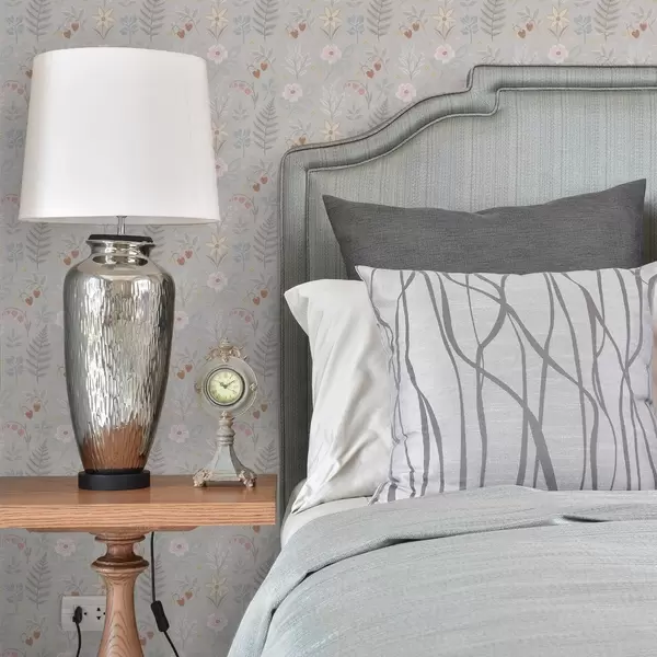 Papel pintado Flores y bayas pastel sobre fondo gris claro Nr. a00406