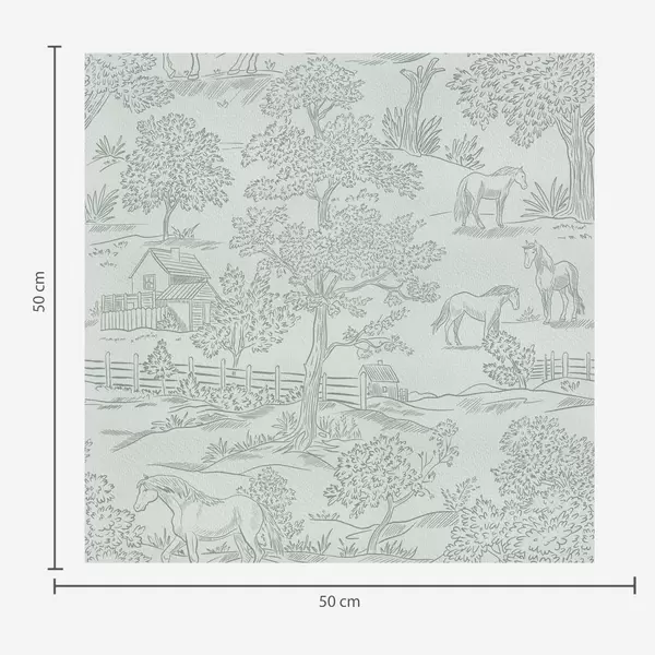 Papel pintado Paisaje verde monocromo con caballos y casitas de campo Nr. a00407