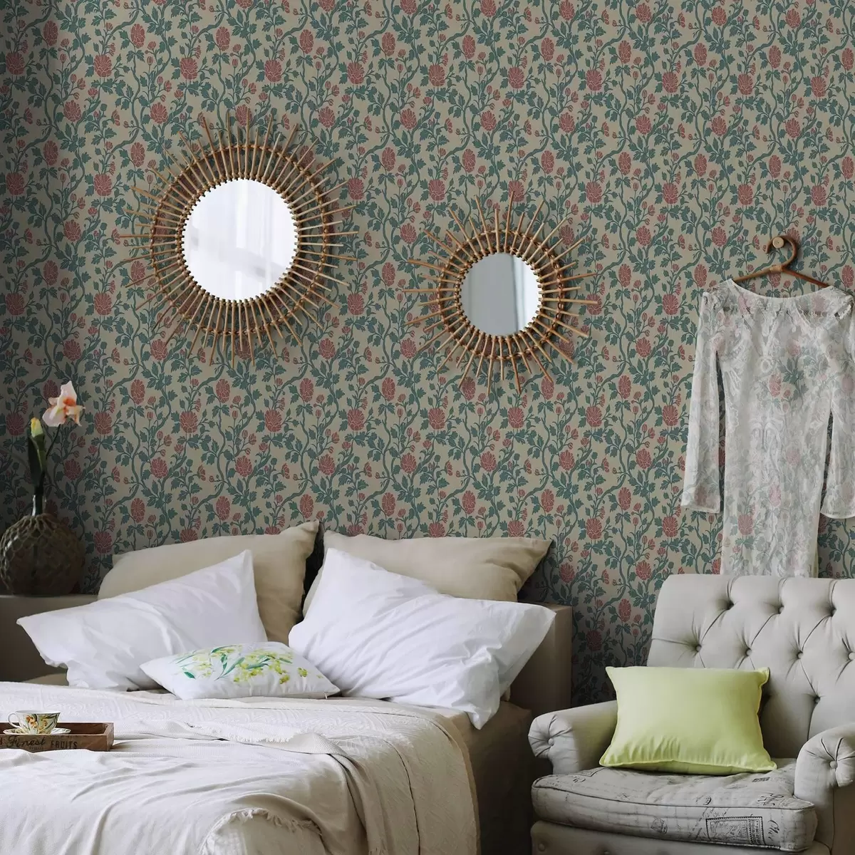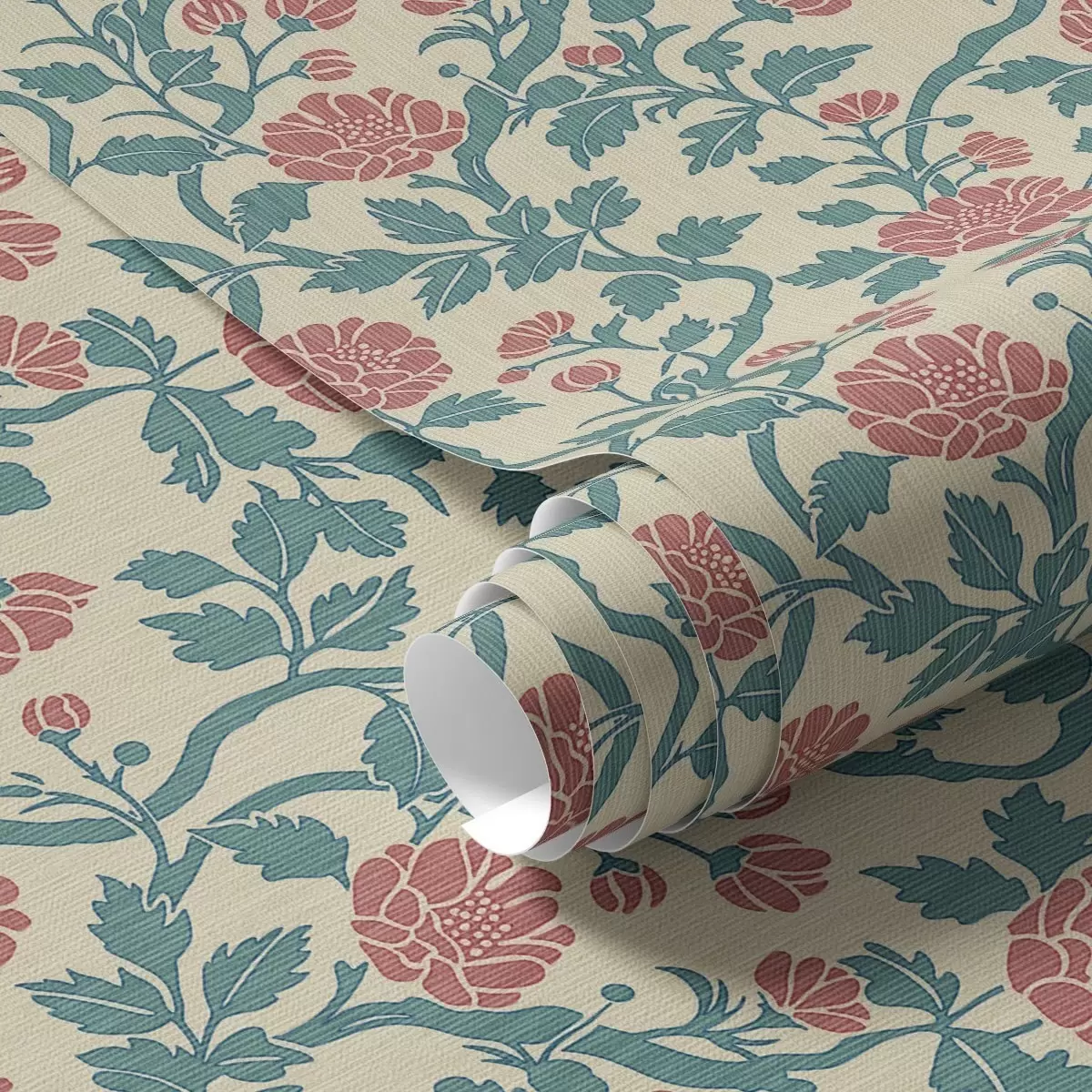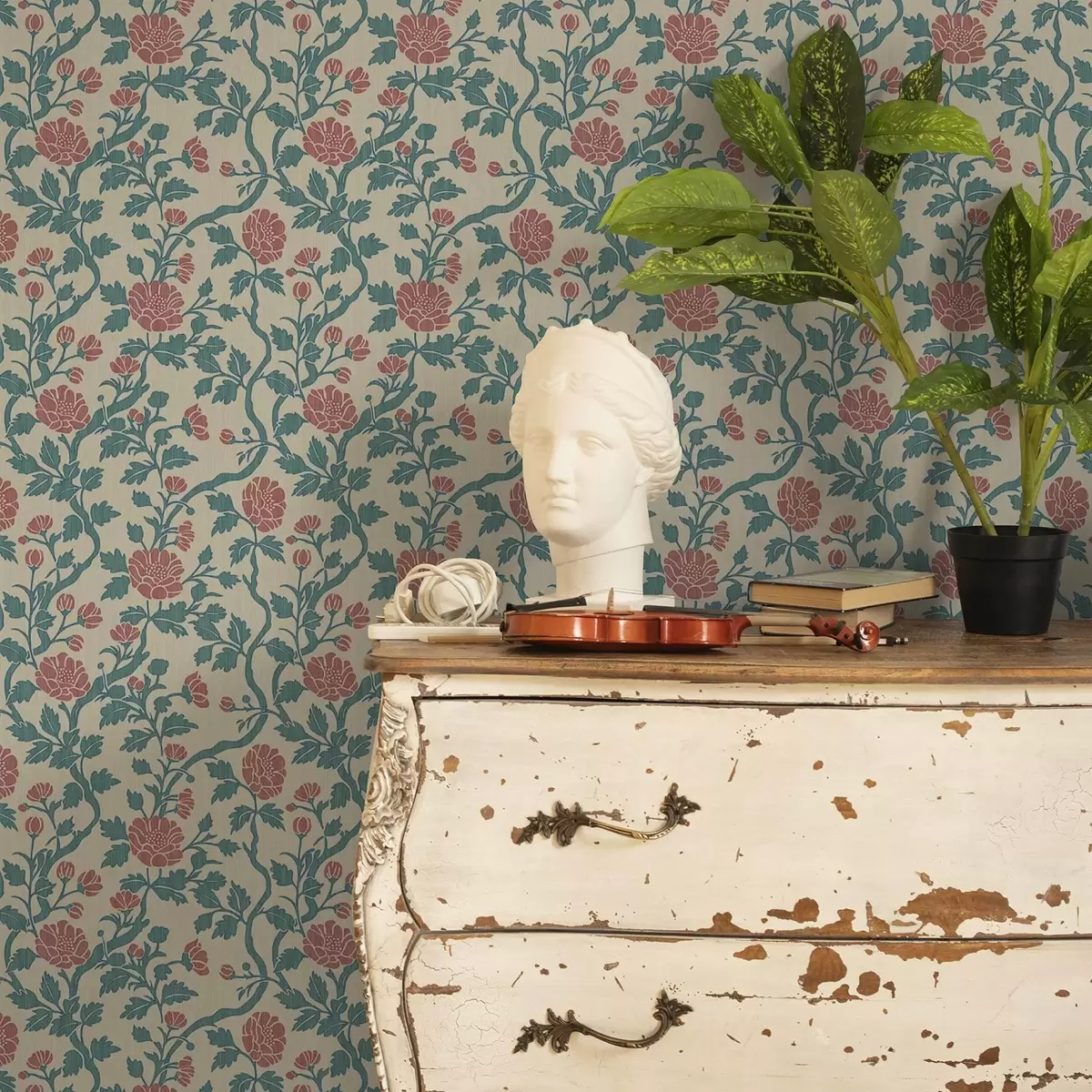 Papel pintado Flores rosas ornamentales sobre fondo beige Nr. a00414