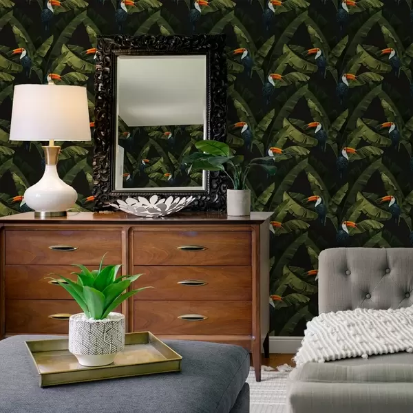 Papel pintado Tucán en hojas tropicales Nr. a00415
