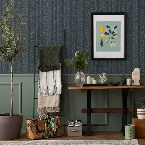 Papel pintado Motivo de rayas con ramitas sobre fondo azul Nr. a00425