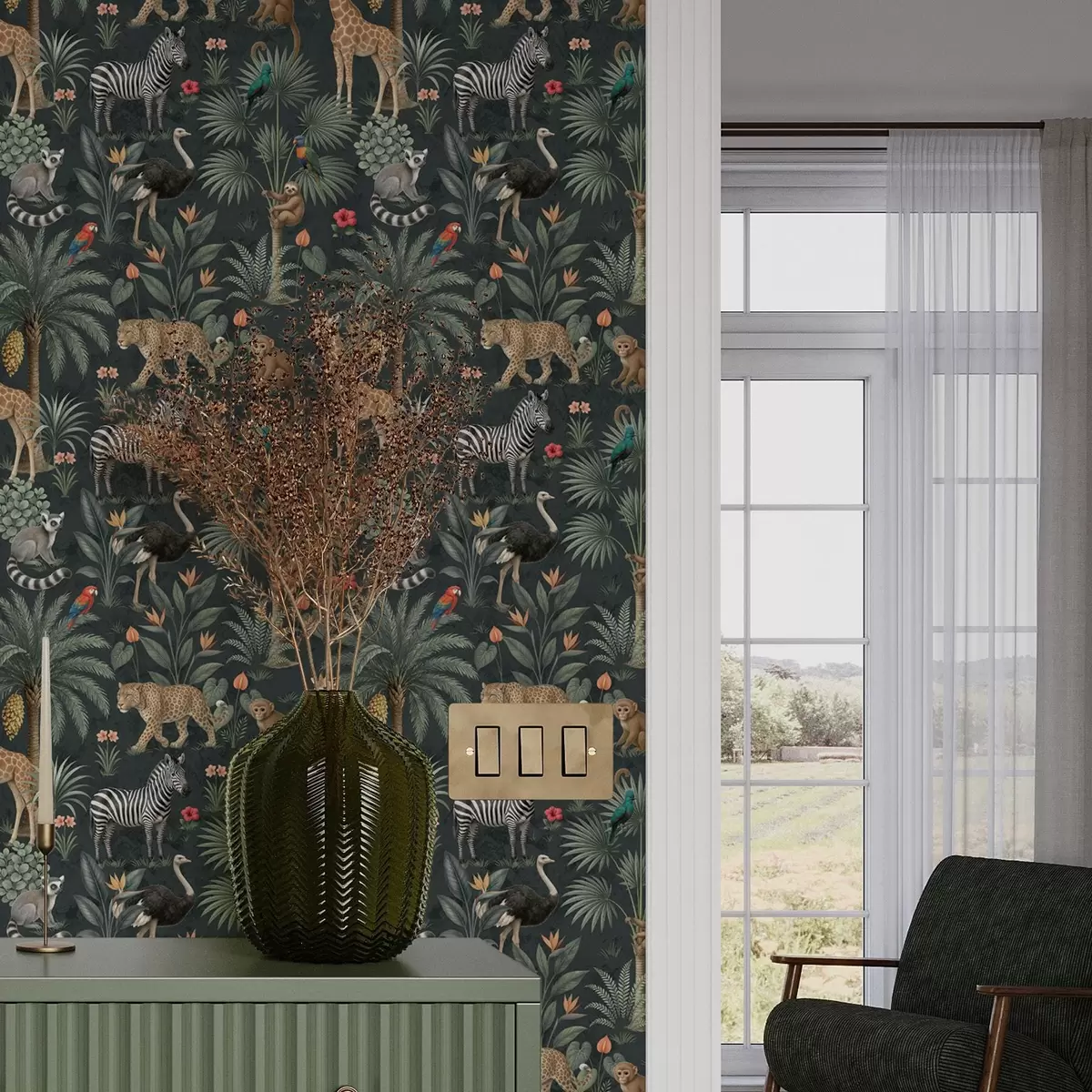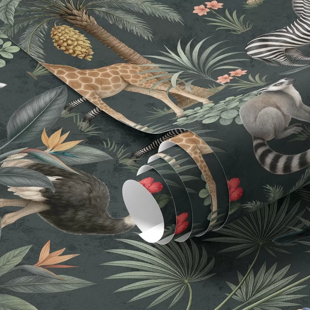 Papel pintado Animales tropicales realistas entre plantas Nr. a00427