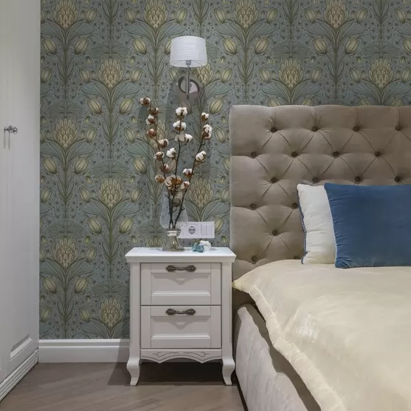 Papel pintado Estampado azul con alcachofas y tulipanes Nr. a00435